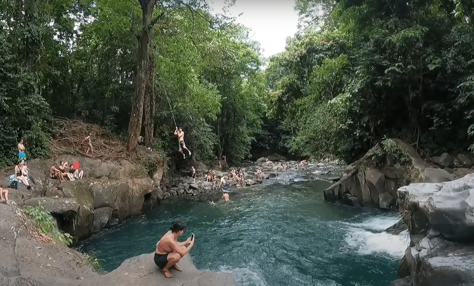 מה שמאפיין את המקום הזה (ונותן לו את שמו) הוא החבל שנמצא בצד אחד של הנהר עליו אפשר לקפוץ כמו טרזן. אנשים רבים קופצים וחלקם אפילו עושים טריקים וסיבובים, מן הסתם, רובם מקומיים שכבר מכירים את המקום היטב.